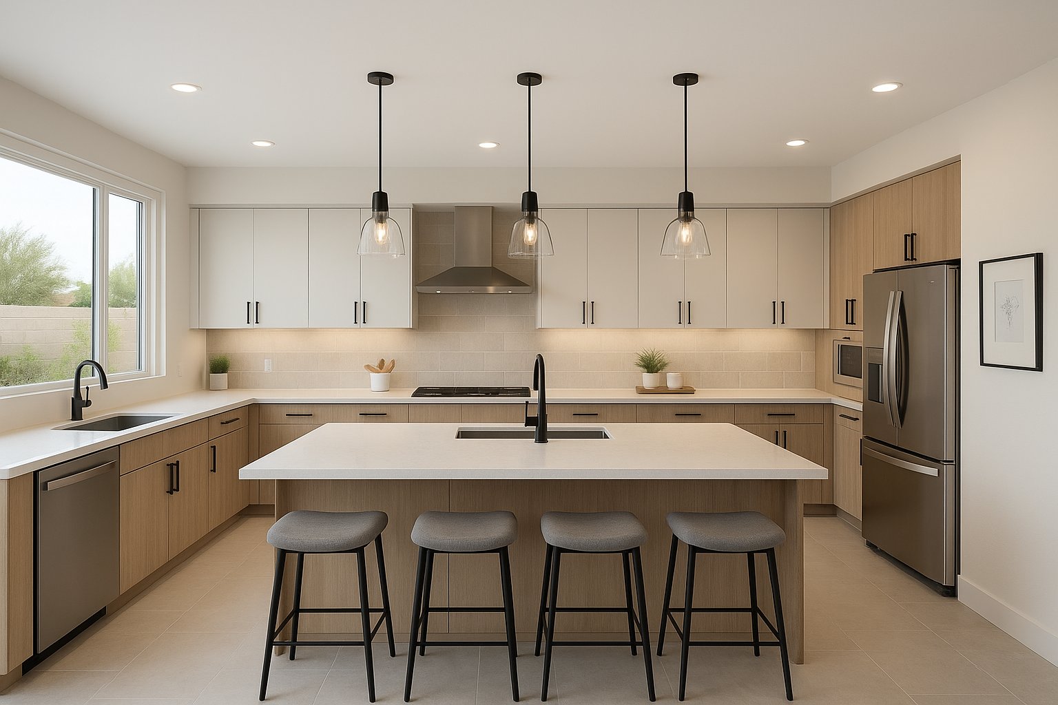 The kitchen remains the heart of the home—and Scottsdale buyers want style paired with function. Quartz countertops, oversized islands, smart appliances, and custom cabinetry are some of the most sought-after upgrades. A sleek, open-concept kitchen not only makes daily living easier but also adds instant resale value.